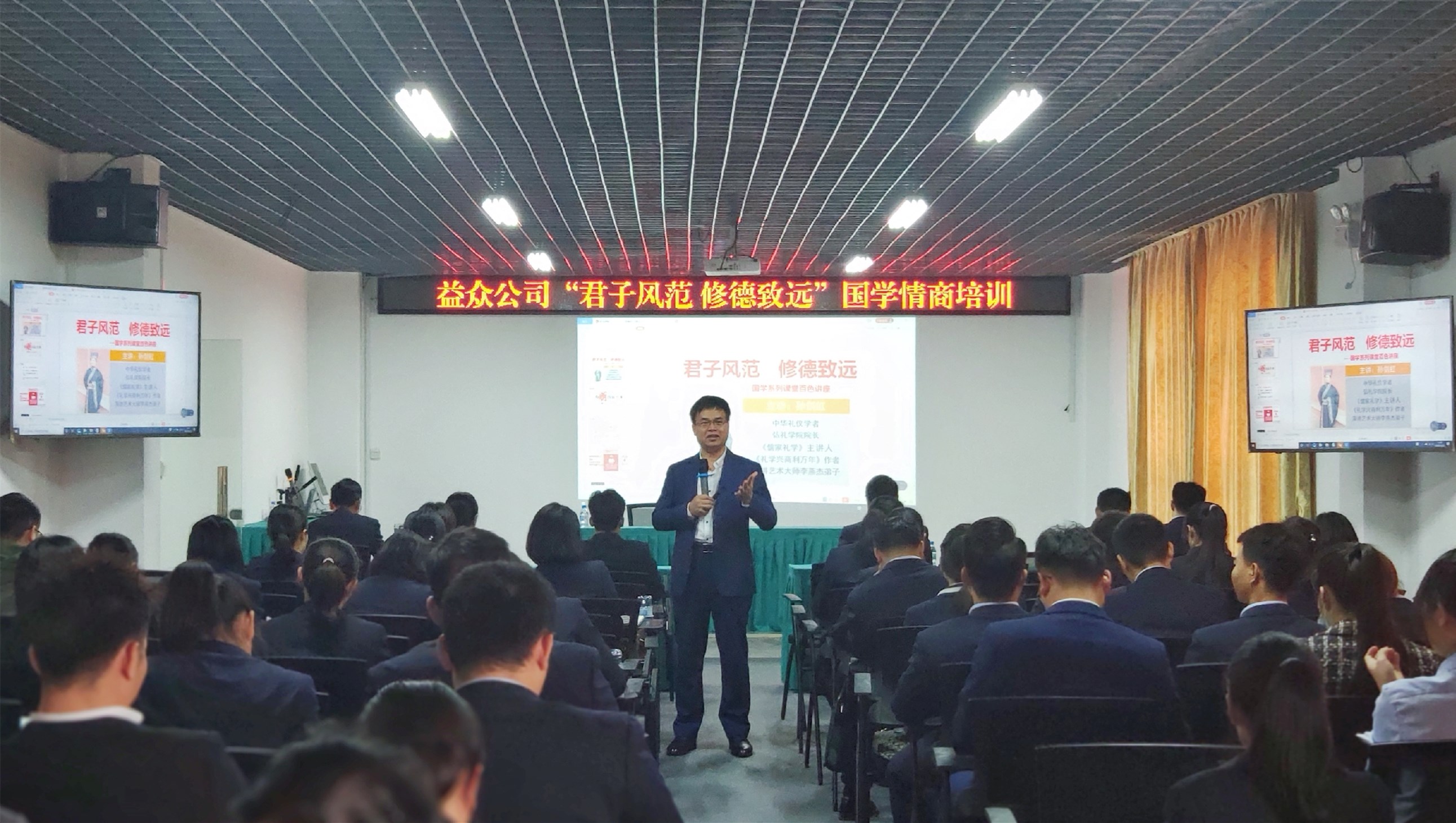 ????????為進一步提升公司員工職業(yè)素養(yǎng),加深對傳統(tǒng)文化的了解和學習,近日,益眾公司開展“君子風范 修德致遠”國學情商培訓,公司百余名員工在老鄉(xiāng)家園辦公區(qū)3樓會議室參加了培訓。