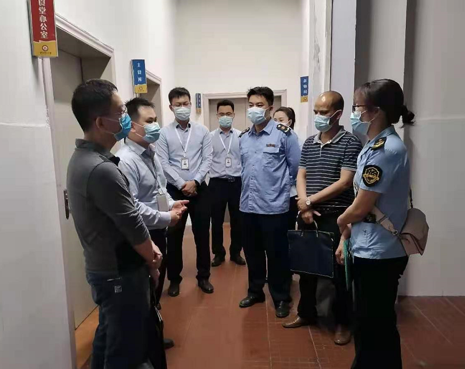 ????????3月18日,右江區(qū)市場監(jiān)督管理局到益眾托管一小校區(qū)開展食品安全監(jiān)督檢查,益眾托管公司負(fù)責(zé)同志陪同檢查。