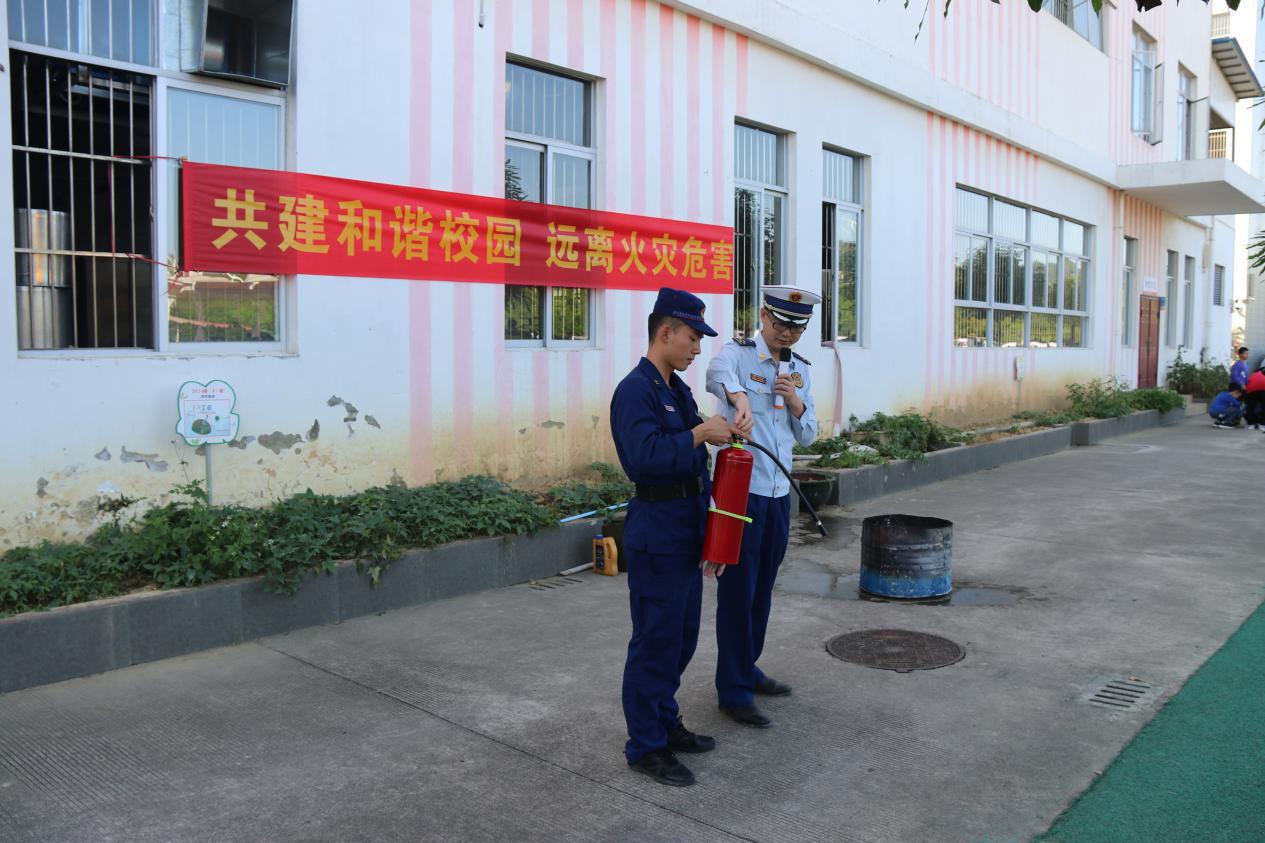 消防官兵給參訓(xùn)人員演示滅火器使用方法