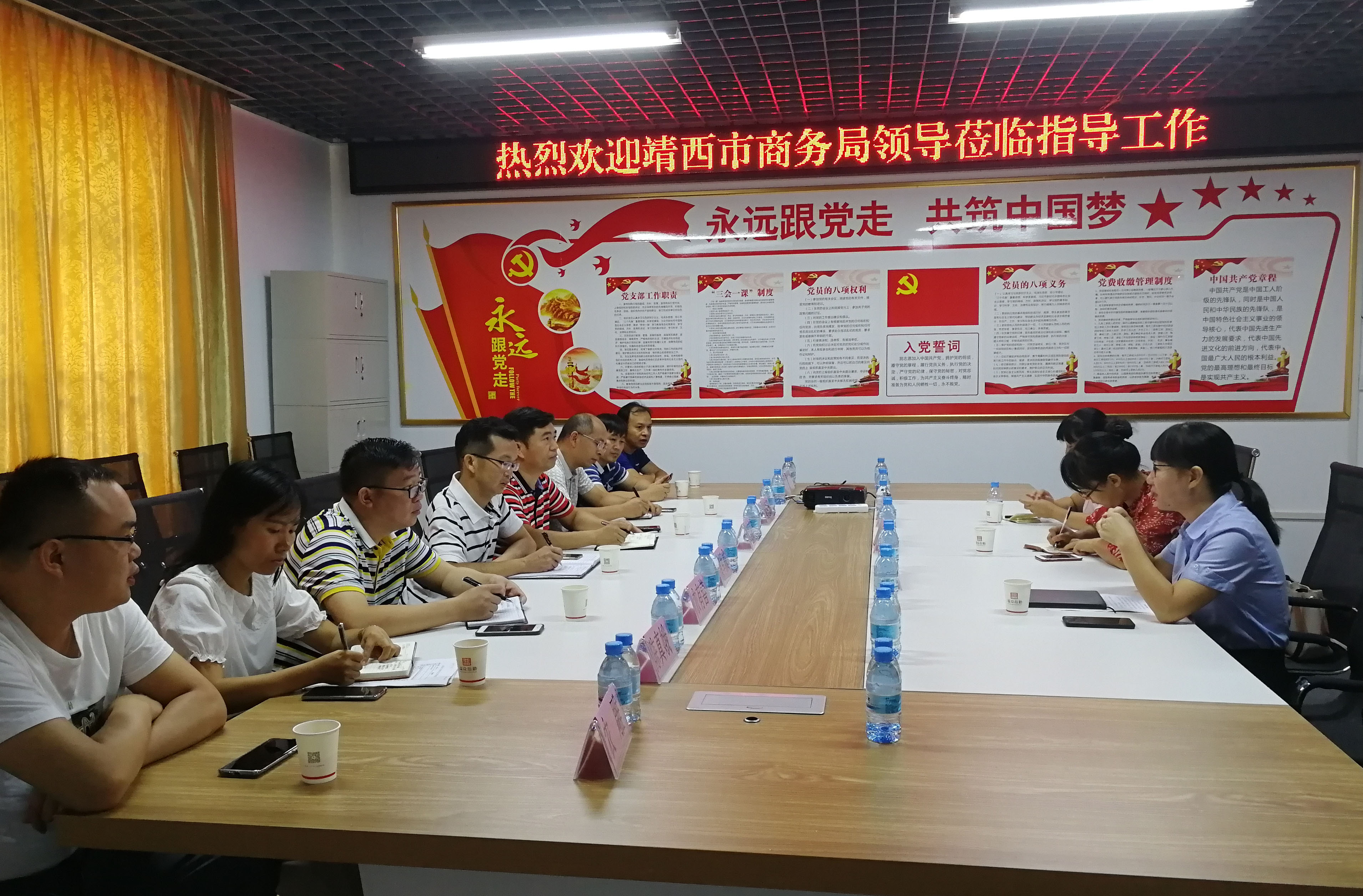 ????????近日,靖西市商務(wù)局局長(zhǎng)趙庭克帶領(lǐng)該局相關(guān)部門(mén)人員、靖西市有關(guān)企業(yè)負(fù)責(zé)人一行8人到廣西益眾后勤產(chǎn)業(yè)投資有限公司考察調(diào)研,右江區(qū)商務(wù)中心主任孫春春、益眾后勤公司相關(guān)負(fù)責(zé)人陪同考察調(diào)研。