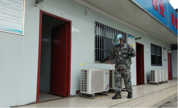 潤(rùn)益商貿(mào)公司工作人員正在消毒辦公場(chǎng)所?