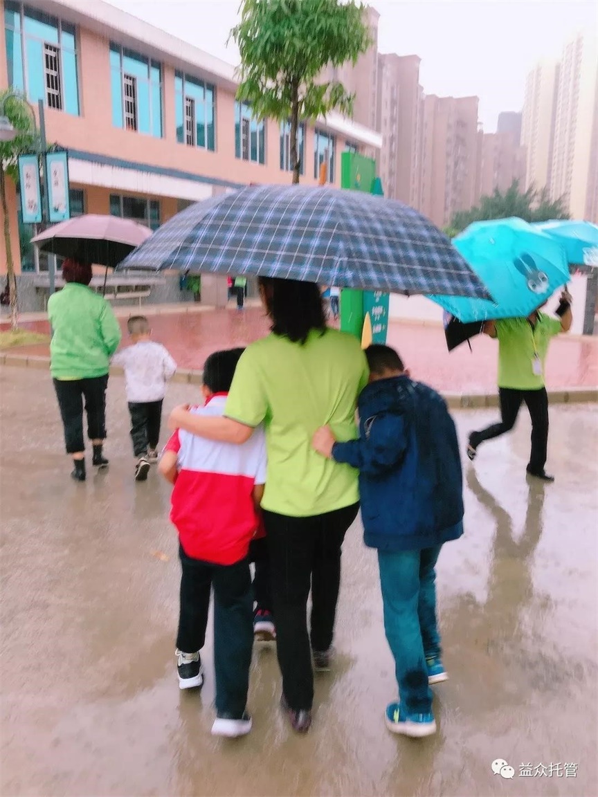 益眾托管公司托管老師雨天為孩子撐開(kāi)愛(ài)的雨傘