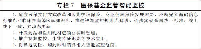 ——建設(shè)智慧醫(yī)保。醫(yī)療保障信息化水平顯著提升,全國(guó)統(tǒng)一的醫(yī)療保障信息平臺(tái)全面建成,“互聯(lián)網(wǎng)+醫(yī)療健康”醫(yī)保服務(wù)不斷完善,醫(yī)保大數(shù)據(jù)和智能監(jiān)控全面應(yīng)用,醫(yī)保電子憑證普遍推廣,就醫(yī)結(jié)算更加便捷。