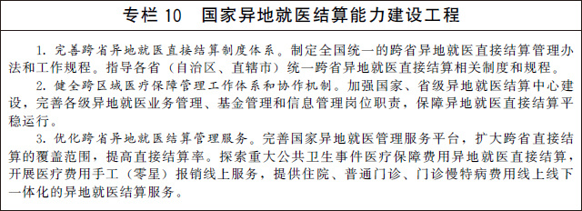 完善異地就醫(yī)直接結(jié)算服務(wù)。加強(qiáng)國(guó)家異地就醫(yī)結(jié)算能力建設(shè),實(shí)現(xiàn)全國(guó)統(tǒng)一的異地就醫(yī)備案,擴(kuò)大異地就醫(yī)直接結(jié)算范圍,逐步實(shí)現(xiàn)住院、門(mén)診費(fèi)用線上線下一體化的異地就醫(yī)結(jié)算服務(wù)。
