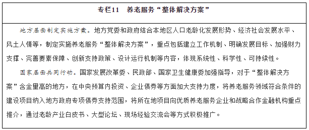各?。ㄗ灾螀^(qū)、直轄市)要根據(jù)人口老齡化發(fā)展形勢,制定實(shí)施專項(xiàng)規(guī)劃,加強(qiáng)與相關(guān)規(guī)劃銜接。各級老齡工作委員會要發(fā)揮統(tǒng)籌協(xié)調(diào)作用,推動老齡工作委員會各成員單位履職盡責(zé),形成工作合力。發(fā)揮養(yǎng)老服務(wù)聯(lián)席會議制度作用,推進(jìn)養(yǎng)老服務(wù)體系建設(shè),強(qiáng)化區(qū)域養(yǎng)老服務(wù)資源統(tǒng)籌管理。支持城市群、都市圈打造養(yǎng)老服務(wù)體系一體化建設(shè)格局,形成服務(wù)能力銜接、產(chǎn)業(yè)發(fā)展協(xié)同的合作區(qū)域。支持大型城市和區(qū)域中心城市推動養(yǎng)老產(chǎn)業(yè)集聚發(fā)展,充分發(fā)揮輻射帶動和示范作用。推動以地級行政區(qū)為單位制定“整體解決方案”,將老齡事業(yè)發(fā)展和養(yǎng)老服務(wù)體系建設(shè)納入經(jīng)濟(jì)社會發(fā)展全局中通盤考慮,全方位整合資源力量,充分調(diào)動各方積極性,推動兜底性、普惠型、多樣化三種路徑協(xié)同發(fā)展。