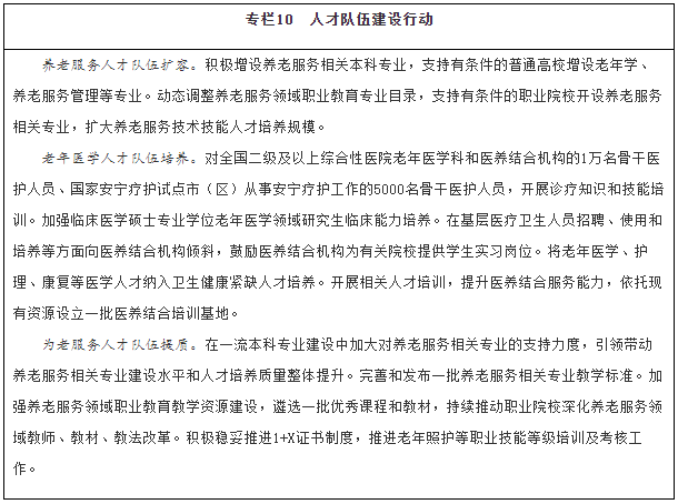 拓寬人才培養(yǎng)途徑。優(yōu)化養(yǎng)老服務(wù)專業(yè)設(shè)置,結(jié)合行業(yè)發(fā)展新業(yè)態(tài),動態(tài)調(diào)整增設(shè)相關(guān)專業(yè)并完善教學(xué)標(biāo)準(zhǔn)體系,引導(dǎo)普通高校、職業(yè)院校、開放大學(xué)、成人高校等加大養(yǎng)老服務(wù)人才培養(yǎng)力度。積極穩(wěn)妥推進(jìn)1+X證書(“學(xué)歷證書+若干職業(yè)技能等級證書”)制度。大力推進(jìn)養(yǎng)老領(lǐng)域產(chǎn)教融合,培育一批產(chǎn)教融合型養(yǎng)老企業(yè),支持院校和優(yōu)質(zhì)機(jī)構(gòu)共建合辦養(yǎng)老服務(wù)實(shí)訓(xùn)基地,探索將有條件的養(yǎng)老機(jī)構(gòu)發(fā)展成實(shí)習(xí)實(shí)訓(xùn)點(diǎn)。大力發(fā)展老年學(xué)、養(yǎng)老服務(wù)管理、健康服務(wù)與管理、中醫(yī)養(yǎng)生學(xué)相關(guān)專業(yè)本科教育。引導(dǎo)有條件的高校開設(shè)老年學(xué)、老年醫(yī)學(xué)、老年護(hù)理學(xué)、老年心理學(xué)、老年社會學(xué)、老年?duì)I養(yǎng)學(xué)、老年服務(wù)與管理、老年社會工作等課程,鼓勵高校自主培養(yǎng)積極應(yīng)對人口老齡化相關(guān)領(lǐng)域的高水平人才,加大新技術(shù)新應(yīng)用新業(yè)態(tài)的引才用人力度,為智慧健康養(yǎng)老、老齡科研、適老化產(chǎn)品研發(fā)制造等領(lǐng)域培養(yǎng)引進(jìn)和儲備專業(yè)人才。落實(shí)醫(yī)師區(qū)域注冊制度,鼓勵醫(yī)務(wù)人員到醫(yī)養(yǎng)結(jié)合機(jī)構(gòu)(同時具備醫(yī)療衛(wèi)生資質(zhì)和養(yǎng)老服務(wù)能力的醫(yī)療衛(wèi)生機(jī)構(gòu)或養(yǎng)老機(jī)構(gòu))執(zhí)業(yè)。在養(yǎng)老機(jī)構(gòu)舉辦的醫(yī)療機(jī)構(gòu)中工作的醫(yī)務(wù)人員,可參照執(zhí)行基層醫(yī)務(wù)人員相關(guān)激勵政策。